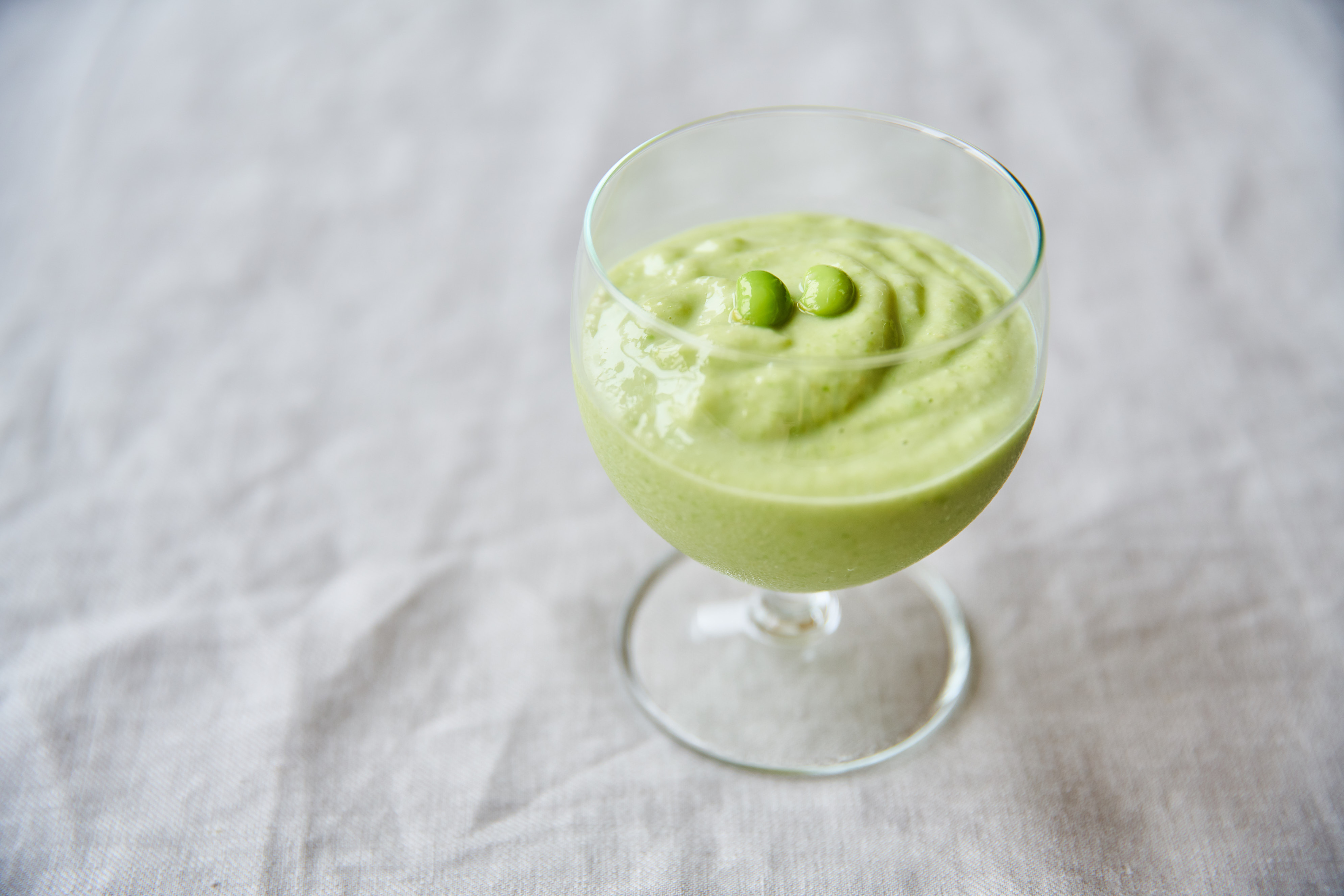 グラスに注ぎ、トッピング用の枝豆をのせる。